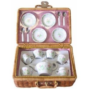 The ultimate cup of tea! This 21-piece set is packed inside a fancy wicker carry case. Set includes an 8 ounce tea pot with lid, four cups with matching saucers, four spoons, sugar bowl with lid, a creamer and four cotton napkins. Dishwasher safe. Napkins are machine washable. Made by Toysmith.Available at Amazon.com Check Price Now!