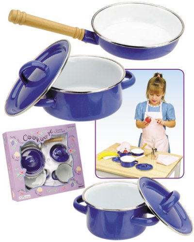 Make real food! Little gourmets will love using this amazing Cookware Set. This 5-piece set of quality navy blue and white enamel cookware is a little chef's dream. Includes a 4.25 inch diameter stock pot, 4.25 inch diameter sauté pan with wood handle, 3.75inch diameter mini pot and two lids. Makes a great gift idea!Available at Amazon.com Check Price Now!