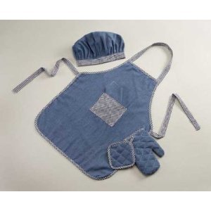 Dressing the part is half the fun! Child's apron in denim protects clothing while your little cook whips up something delicious! Set also includes a hot pad, oven mitt, and a chef's hat. For ages 3 to 10 years.Available at Amazon.com Check Price Now!